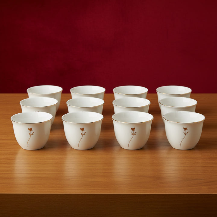 The 5860G Cawa Cup 12-Piece Set is a graceful celebration of timeless beauty and refined hospitality. Each cup is crafted from premium ceramic and delicately adorned with a golden floral motif — a symbol of elegance, warmth, and charm. The minimalist design, enhanced by a fine gold rim, perfectly balances simplicity with sophistication.