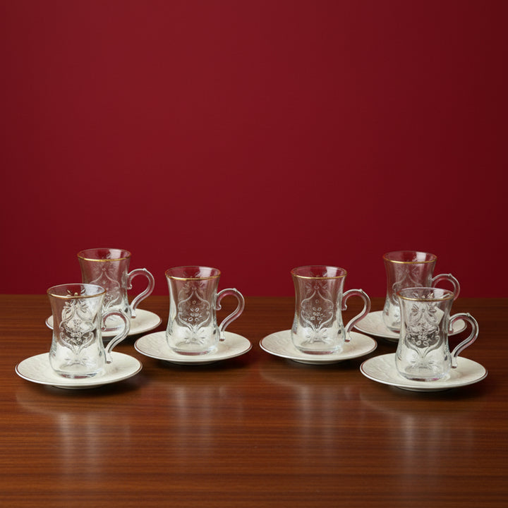 The 624-20 Rose Tea and Cawa Cup 20-Piece Set – Elegant Ivory Design with Gold Detailing is the perfect blend of sophistication and practicality for modern hospitality. Designed to impress, this set features a harmonious combination of glass and ceramic pieces, each delicately embossed with floral patterns and accented with fine gold detailing. Its soft ivory tone adds a touch of class to any tea or coffee gathering, making it ideal for both everyday use and special occasions. Crafted with care and attention to detail, this set reflects elegance and quality in every piece.