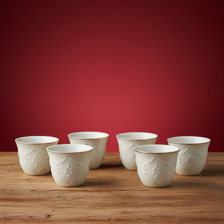 - 6 × Ivory Ceramic Cawa Cups (Arabic Coffee Cups)