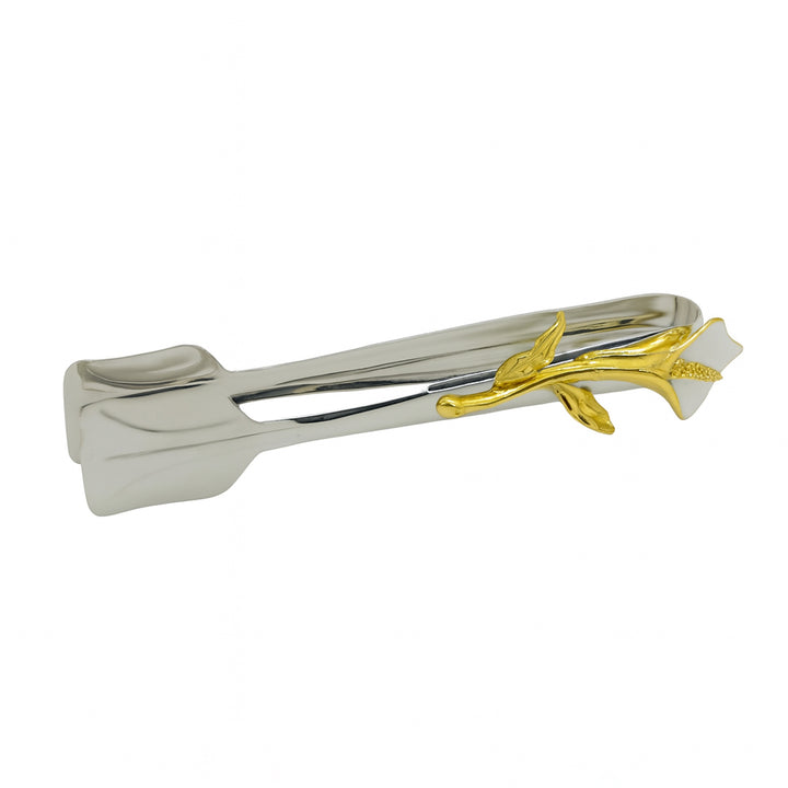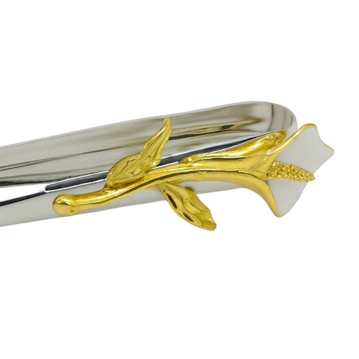 94757-09 Incense Charcoal Tongs – Silver Finish with Golden Lily Accent