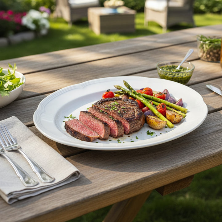 The A28576 Flat Plate – 12" – White Porcelain Finish blends refined style with everyday durability, making it a perfect centerpiece for both home dining and elegant gatherings. Its pristine white finish and smooth round form exude understated luxury, while the fine porcelain material offers strength, longevity, and a premium dining experience. Whether used for serving main courses or showcasing signature dishes, this plate elevates every presentation with effortless grace.