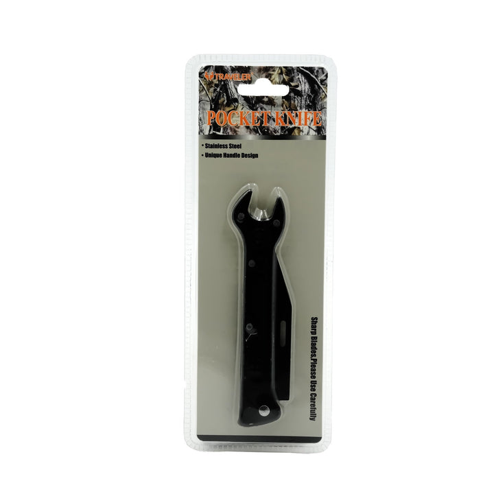 The AMD3424 Pocket Knife – Stainless Steel Folding Knife with Wrench Handle Design – Black combines rugged durability with a creative twist. Crafted with a high-quality stainless steel blade and a unique wrench-style handle, this compact knife delivers both strength and utility, making it a perfect companion for outdoor adventures, travel, or quick household tasks.