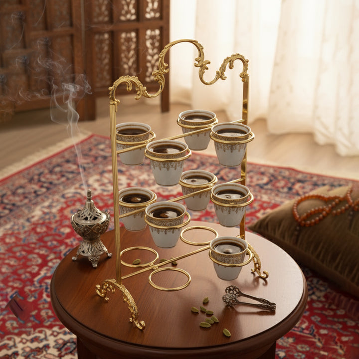 - 12 Ring Design: Securely holds up to twelve Arabic cawa cups.
