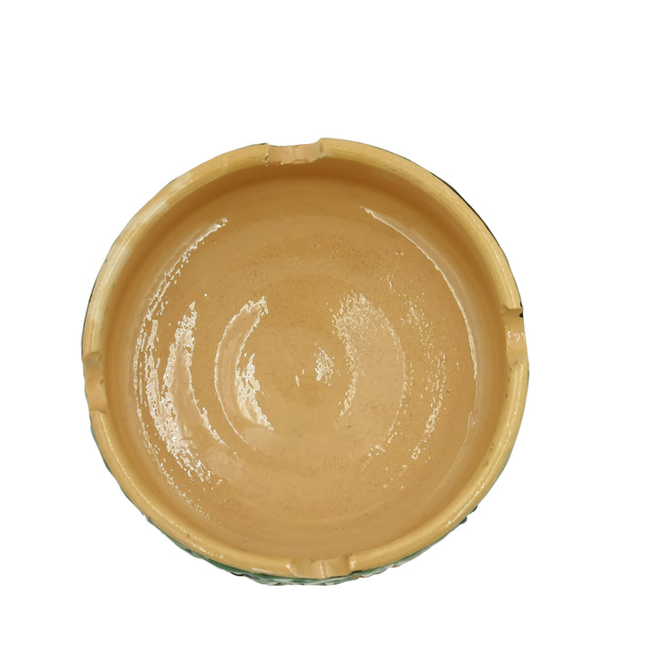 The Ceramic Handmade Ashtray – 12 cm Decorative Hand-Painted Round Ash Holder combines elegance, durability, and artistic craftsmanship. Expertly handmade by skilled artisans, it features a smooth beige interior and a beautifully hand-painted green exterior adorned with intricate floral and geometric patterns in white, yellow, and blue accents. Designed with three notches for convenient use, this ashtray adds a refined decorative touch to tables, patios, or smoking lounges. Durable and easy to clean, it’s a perfect blend of functionality and traditional artistry.