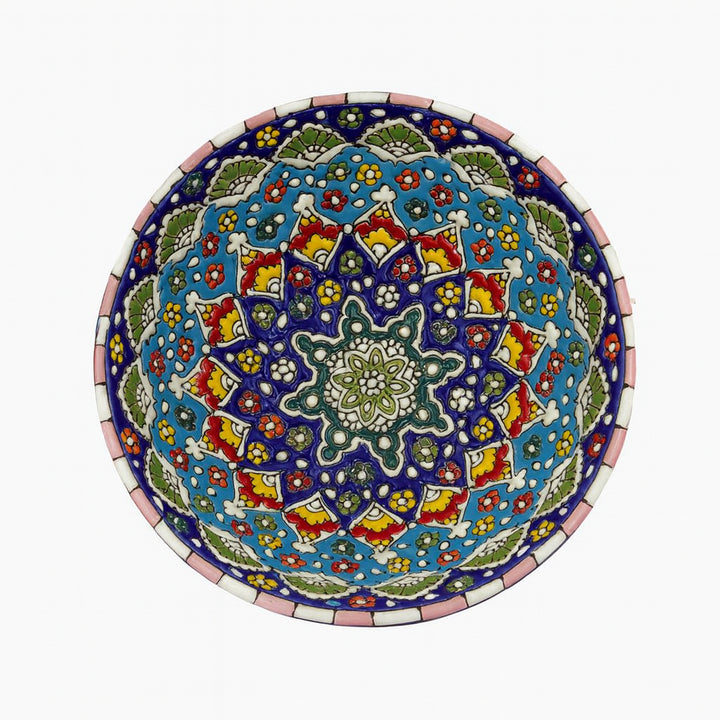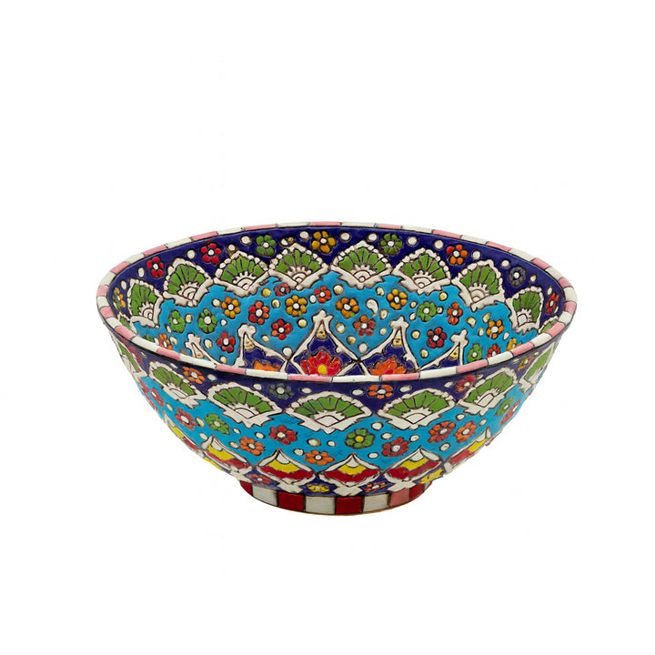 The Ceramic Handmade Bowl – 30" Decorative Hand-Painted Serving Bowl is a striking masterpiece that reflects traditional craftsmanship and intricate artistry. Expertly handmade and beautifully painted by artisans, this large bowl features elaborate geometric and floral motifs in a stunning mix of blue, green, red, yellow, and white tones. Its wide design and glossy glazed finish make it both functional and decorative — perfect for serving fruits, snacks, or as a captivating centerpiece in your dining or living space. Every detail embodies the charm of handcrafted perfection.