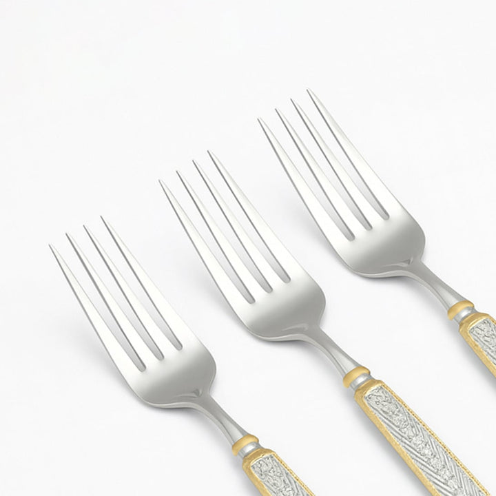 The CUT0010460 Stainless Steel Tea Fork Set combines elegance with functionality, making it an essential addition to any modern dining collection. Crafted from premium stainless steel, each fork features a stunning silver body with refined gold-accented handles, giving a luxurious touch to your table setting. With a compact height of 14cm (H), these tea forks are perfectly sized for enjoying desserts, fruits, or small bites with ease and style.