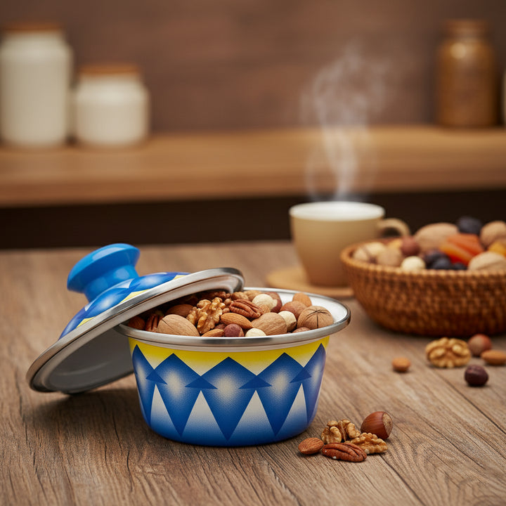 Stylish Enamel Serving Bowl with Lid for Everyday Use