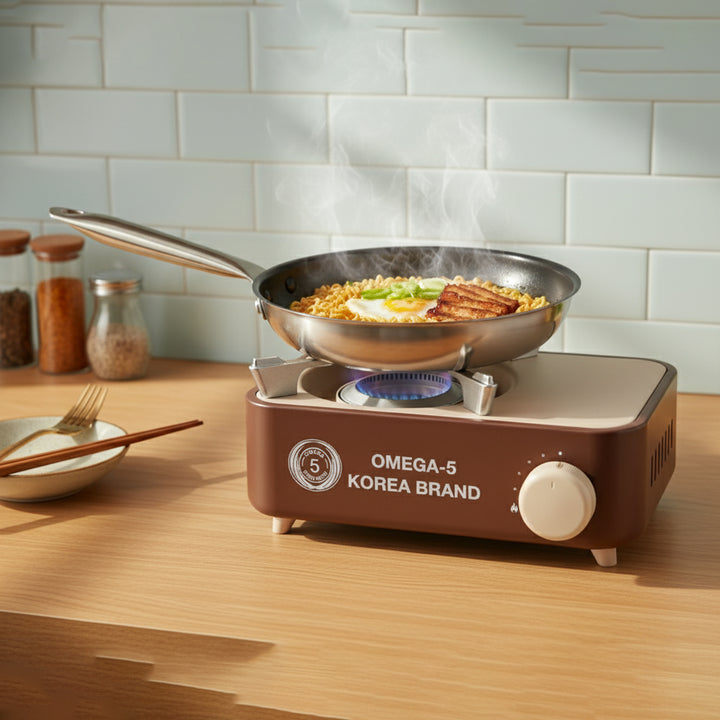 The QD-MINI Omega-5 Portable Gas Stove combines sleek design with powerful performance, making it an essential companion for outdoor adventures and home use. Built with Korean-quality precision, this stove features a secure magnetic locking system for safe fuel installation, ensuring convenience and peace of mind. Its compact size, stylish two-tone finish, and durable construction make it perfect for camping, picnics, or quick cooking anywhere.
