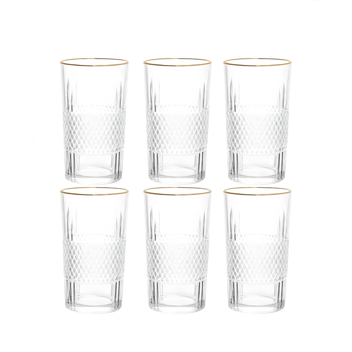 DSKB103-3BR Glass Tumbler Set – 6 Pieces – 280ml Premium Crystal-Cut Drinking Glasses with Gold Rimee