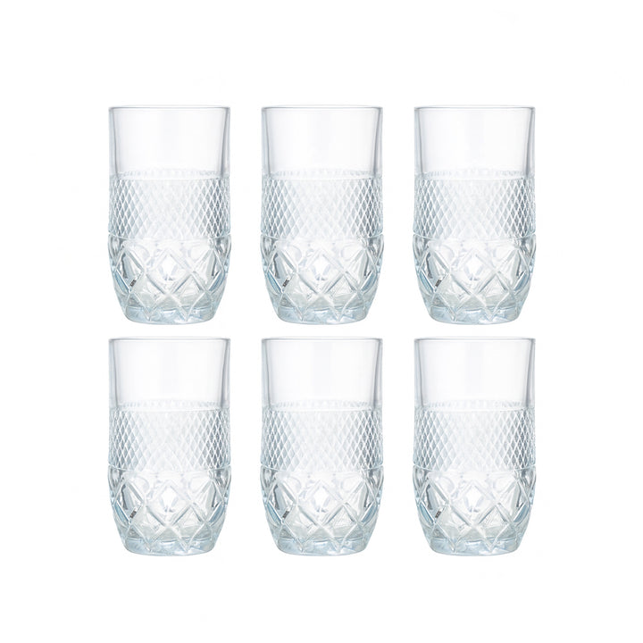 DSKB502-2A Glass Tumbler Set – 6 Pieces – 450ml Diamond-Cut Crystal Clear Drinking Glasses