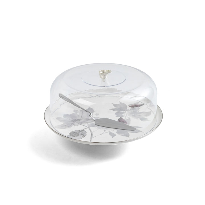 ET3014 Marisella Cake Service Set – 9 Pieces – Grey & Silver Floral Design