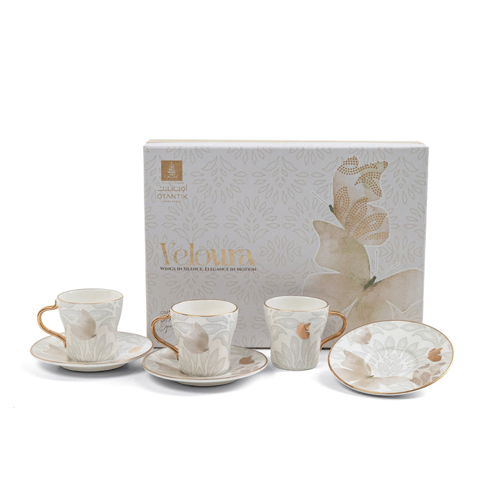 ET3069 Veloura Turkish Cup & Saucer Set – 12 Pieces – Brown & Gold Floral Design