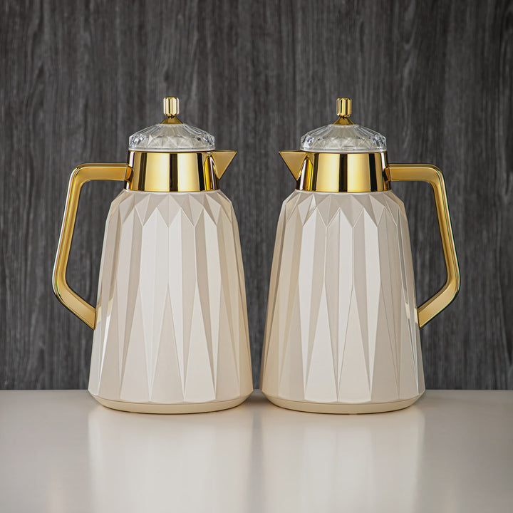 The FG209 Vacuum Flask 2PC Set in Pearl White Gold combines sophistication and functionality. Featuring a pearl white finish with gold accents, it keeps beverages at the perfect temperature while adding a touch of luxury to your serving experience.