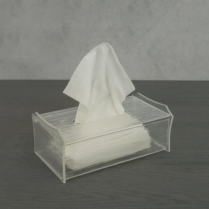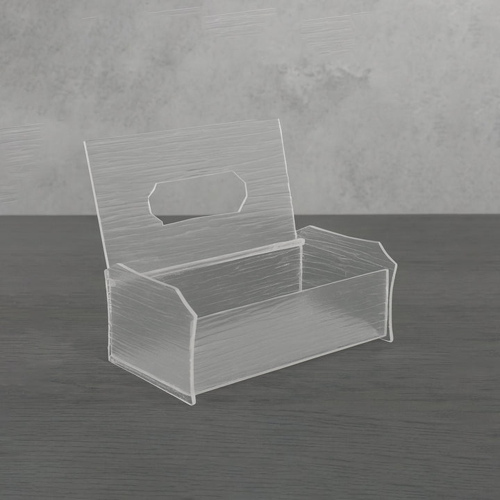 The HS-55087 Acrylic Clear Tissue Box embodies refined minimalism with its textured transparent design. Crafted from durable, high-quality acrylic, it adds a touch of modern sophistication to any space — from elegant living rooms to professional office desks. The subtle grain pattern elevates its appearance, creating a balance of clarity and character while keeping tissues neatly organized and easily accessible.