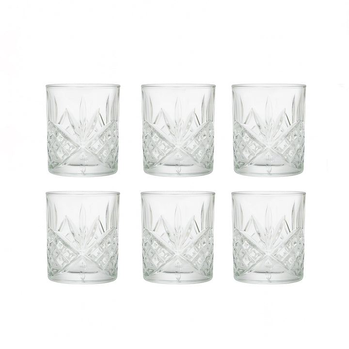 The ISF-343 Mayer Titanic Glass Tumbler 6-Piece Set offers a touch of classic sophistication to your drinkware collection. Featuring a clear, crystal-cut design with a wide, sturdy shape, these 330 ml tumblers are perfect for serving water, juice, cocktails, or whiskey. Their timeless pattern and durable construction make them an ideal choice for everyday use as well as formal gatherings.