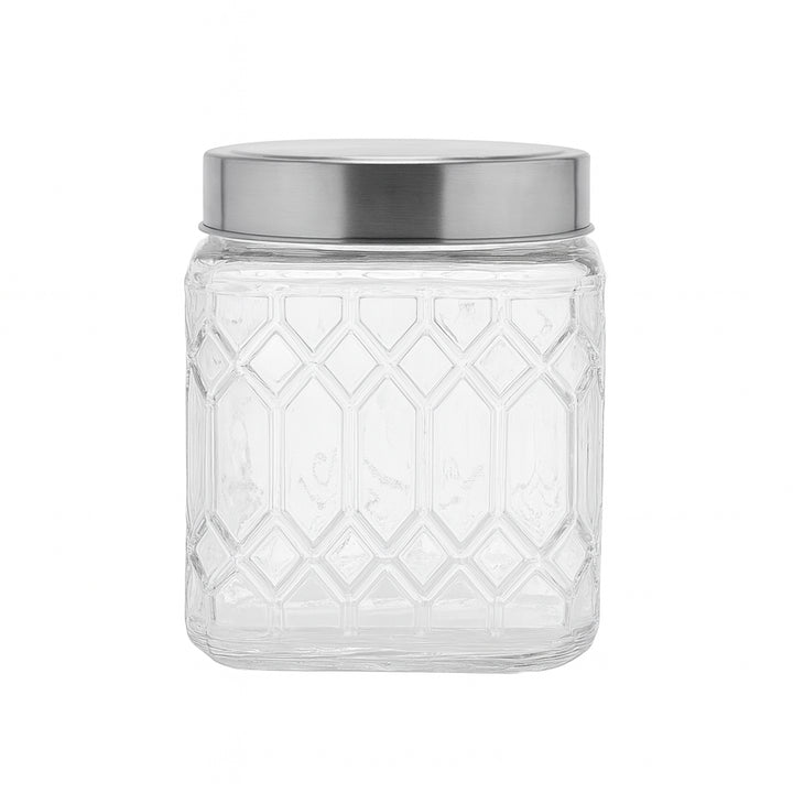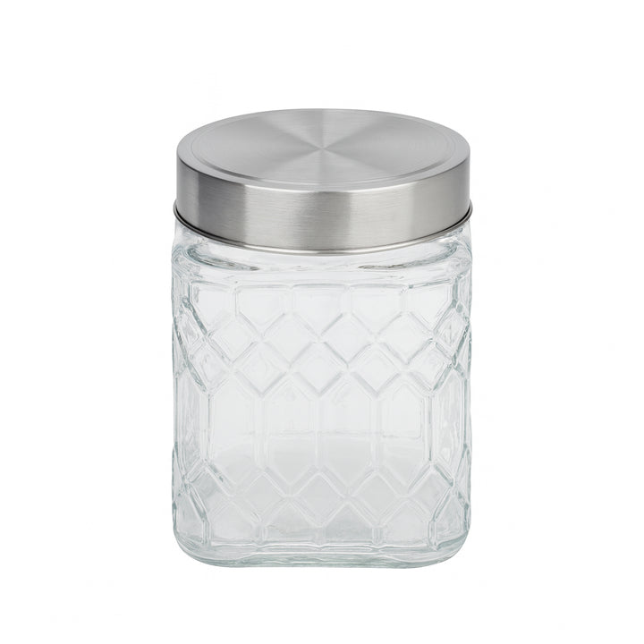 Upgrade your kitchen organization with the MARCH-0032 Glass Storage Jar with Silver Lid – 1400 ml. Featuring a beautiful diamond-cut glass design and a secure screw-on silver lid, this jar is perfect for storing dry ingredients like pulses, cereals, sugar, coffee, or snacks. Its larger 1400 ml capacity makes it ideal for bulk storage while still looking stylish on your kitchen shelves or countertop.