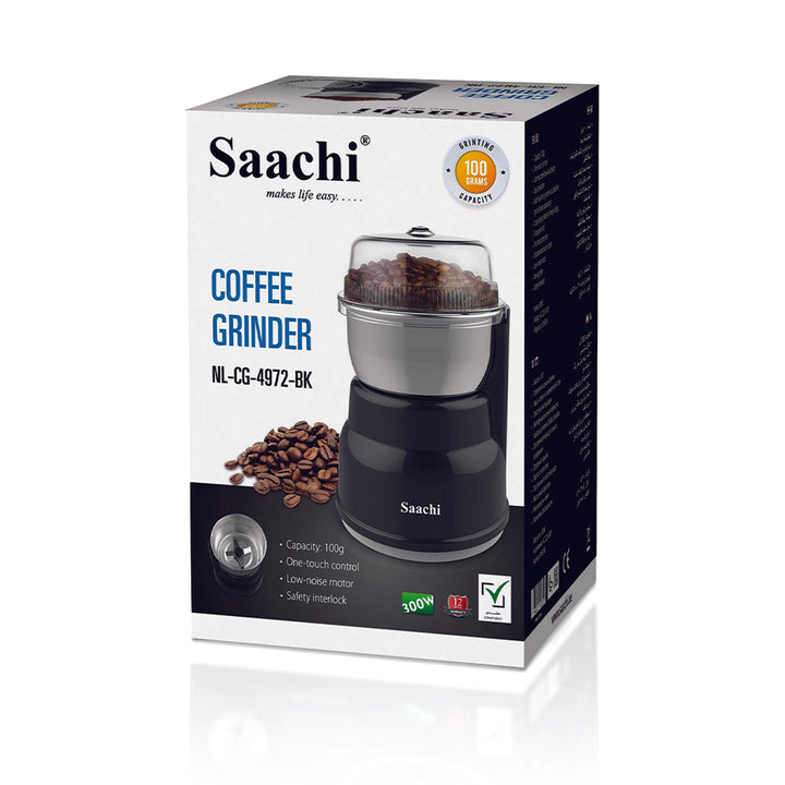 The Saachi NL-CG-4972-BK Electric Coffee Grinder – 100g Capacity – 300W – Black is designed for fast, efficient, and precise grinding of coffee beans, spices, and grains. Its durable stainless steel bowl and blades ensure long-lasting performance, while the one-touch control offers easy operation for consistent results every time. Compact, powerful, and quiet, it’s a must-have for every modern kitchen.