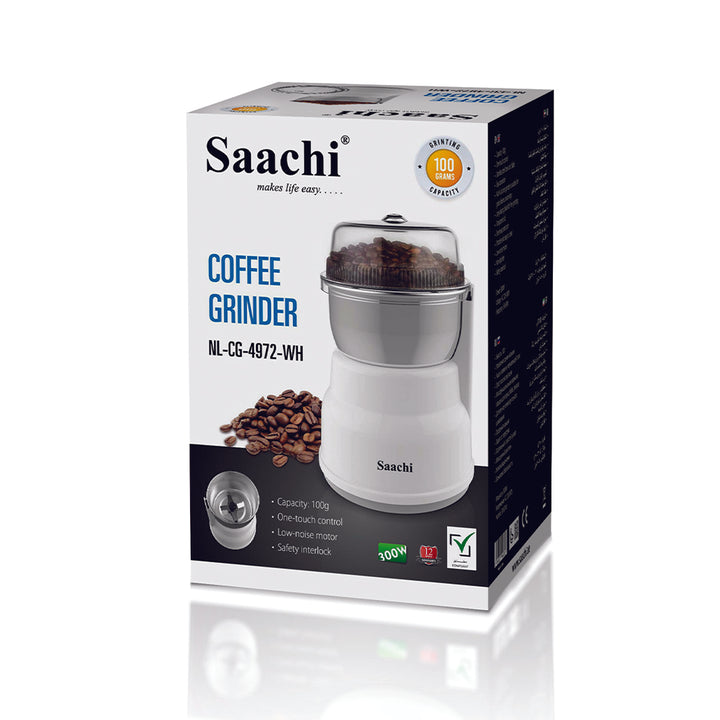 Saachi NL-CG-4972-WH Electric Coffee Grinder – 100g Capacity – 300W – White