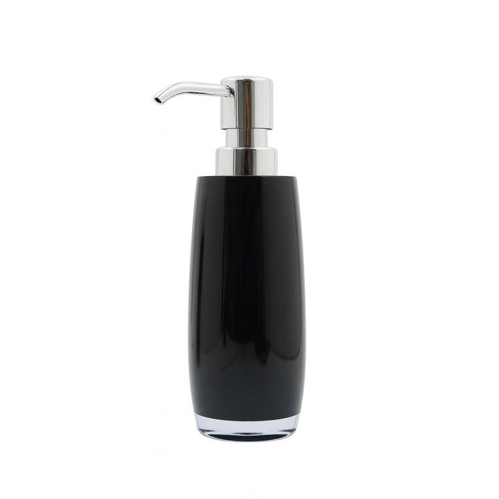 - Design: Glossy black slim tall body with chrome pump