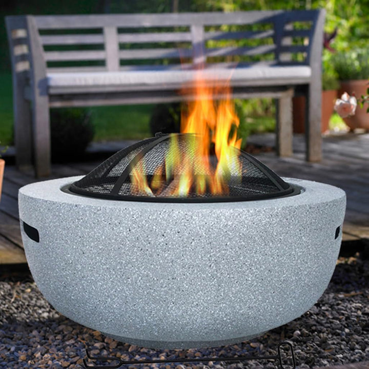 - Material: Heat-resistant stone-style body with metal fire bowl
