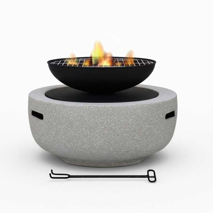 - Material: Durable stone-effect exterior with a heat-resistant metal bowl