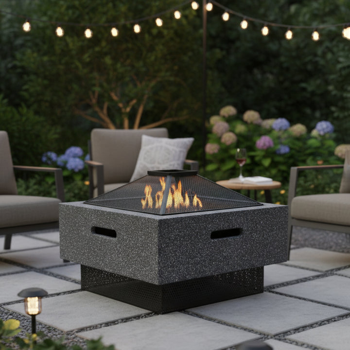- Material: Stone-effect exterior with heat-resistant metal fire bowl