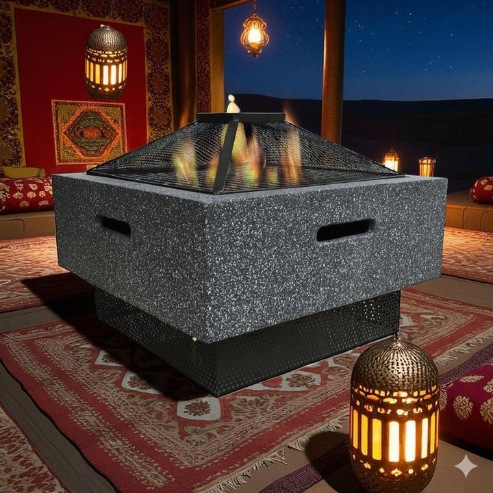 R19S0625039A VIP Outdoor BBQ Fire Pit Grill – 52.5 x 52.5 x 41 cm – Square Stone-Style Design