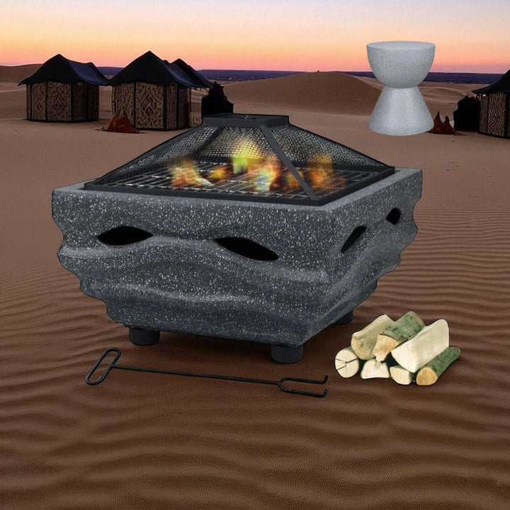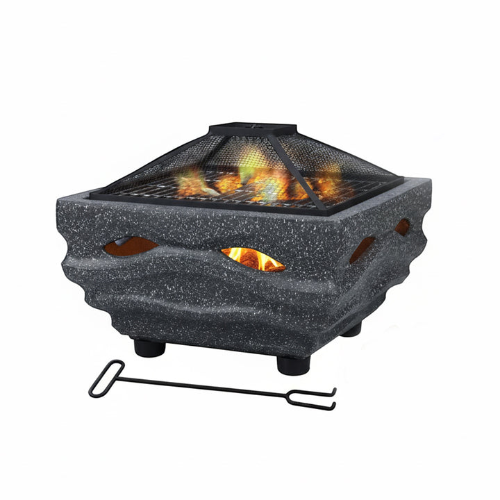 - Material: Heat-resistant stone-effect body with metal fire bowl