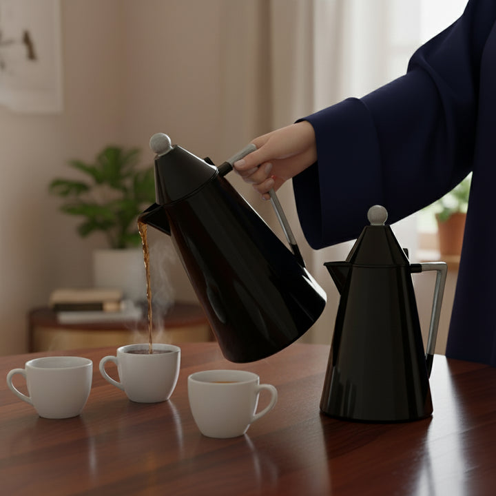Command attention with the RGD17Q Vacuum Flask 2-Piece Set (0.5 L + 1.0 L) – Jet Black & Grey, where powerful design meets superior function. The deep jet-black finish, complemented by sleek grey handles and chrome detailing, embodies confidence and modern refinement. Perfect for both hospitality and everyday elegance, this dual flask set keeps your tea and coffee at the ideal temperature — delivering performance that’s as striking as its look.