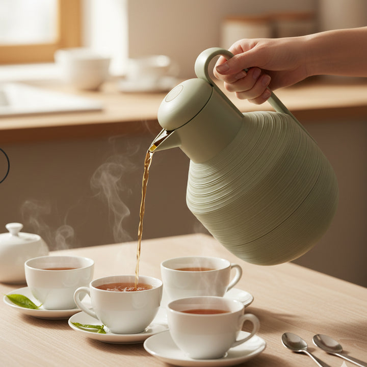 Enjoy long-lasting temperature control with the ROSPH Vacuum Flask – 1 L – Light Coffee. Designed with a modern, ribbed-texture finish and a gold-accented push-button lid, this flask is perfect for serving tea, coffee, or chilled drinks in style. Its double-walled vacuum insulation ensures your beverages stay hot or cold for hours, making it an ideal companion for gatherings, offices, or daily use at home.