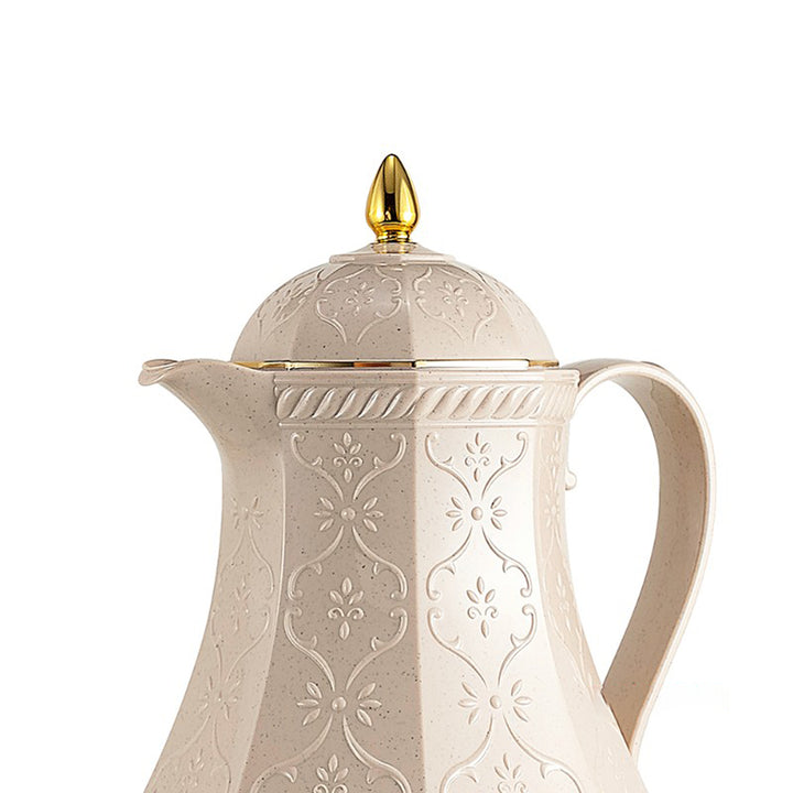 RS-624 Rose Vacuum Flask – 1.0L – Tea Server – Brown Beige Finish with Golden Accents