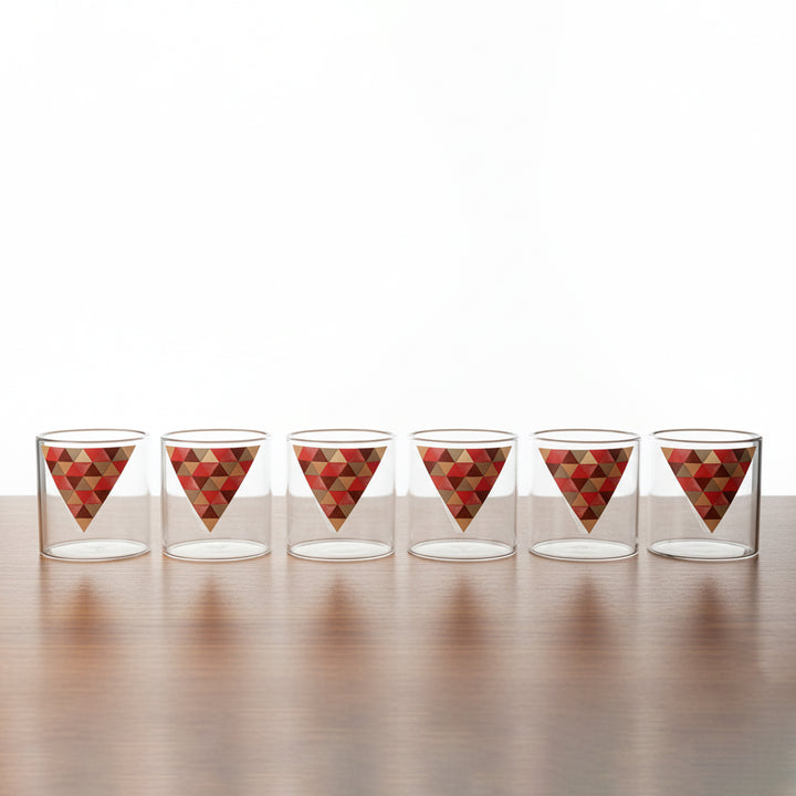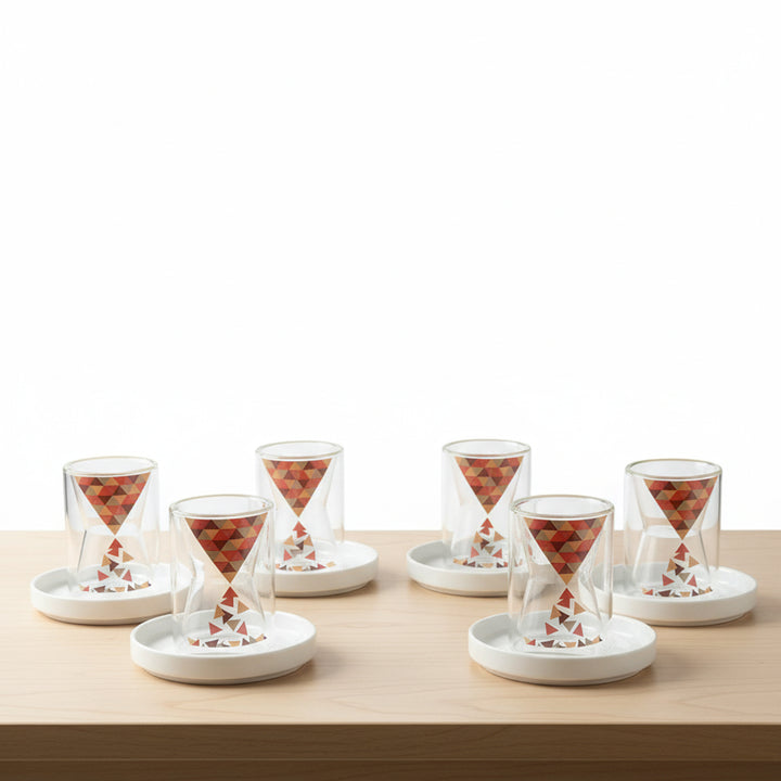 The RZ-251406 Tea & Cawa Cup Set – 18-Piece Clear Glass Set with Geometric Pattern brings a modern twist to traditional tea serving. Crafted from premium clear glass, each piece features a distinctive red and brown geometric triangle design that adds charm and sophistication to your table. Perfect for family gatherings, guests, or daily use.