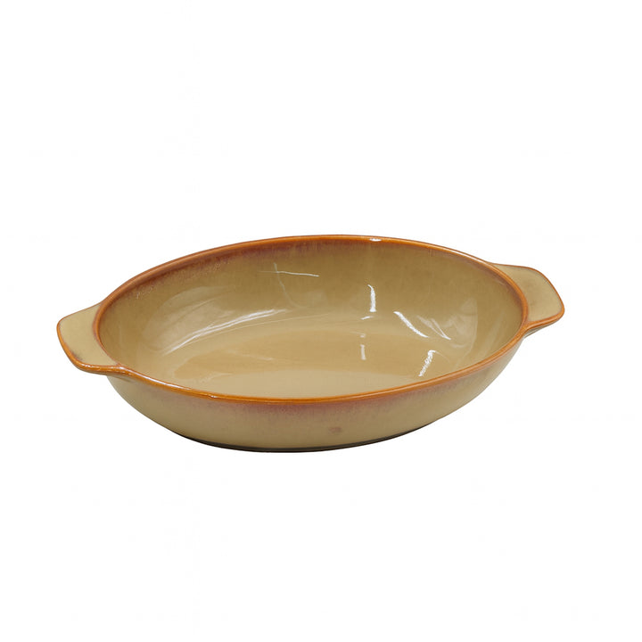The SC3681 Porcelain Oven Plate is designed for both style and functionality, perfect for baking, roasting, or serving straight from the oven to the table. Crafted from durable porcelain with a warm glossy beige finish, it distributes heat evenly for perfect results every time. The dual side handles offer easy grip and handling, making it as practical as it is elegant.