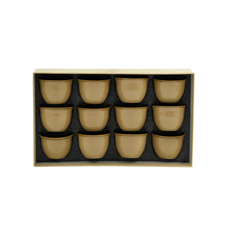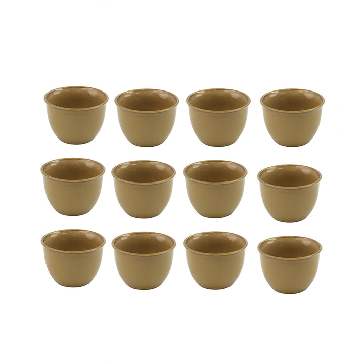 The SC3689 Porcelain Cawa Cup Set combines timeless Arabic hospitality with contemporary design. This 12-piece set features beautifully crafted cawa cups in a smooth, glossy beige finish that exudes warmth and sophistication. Each cup is designed with a comfortable grip and rounded lip for a perfect sip experience. Ideal for serving Arabic coffee, espresso, or tea, this set adds an elegant charm to any gathering or special occasion.