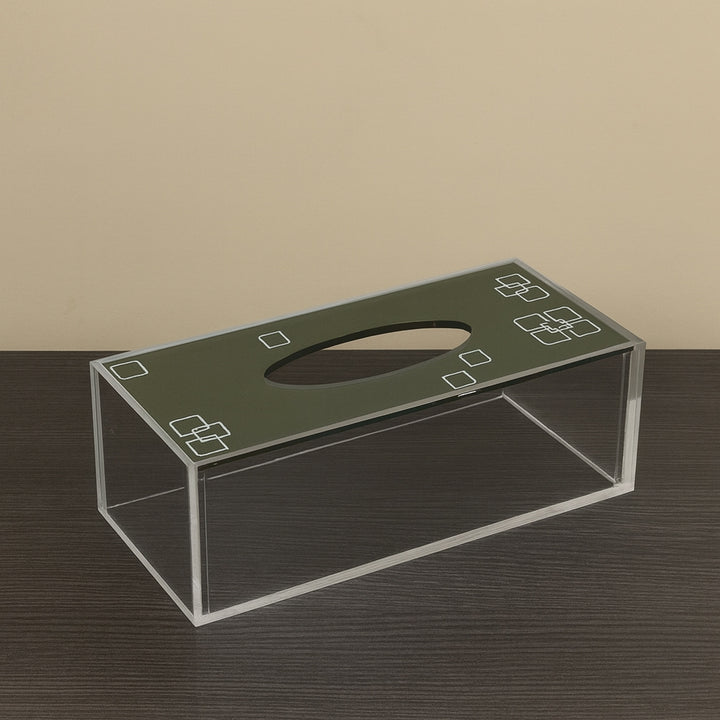 TB0001 Acrylic Tissue Box with Print – 22 cm (W) × 10 cm (L) × 7 cm (H) – Clear Design with Modern Pattern