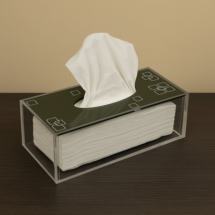 The TB0001 Acrylic Tissue Box brings a sleek, decorative touch to your home or office setup. Featuring a clear acrylic body with a printed geometric pattern on the top, this tissue box offers both style and practicality. Its compact, modern design fits easily on tables, desks, and countertops—adding a refined look to any setting.