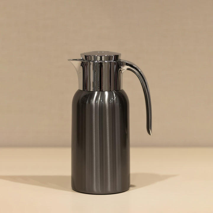 The TSC12Q Steel Vacuum Flask – 1.3L in Stylish Metallic Grey Finish is a statement of modern design and practical functionality. Built with premium stainless steel double-wall insulation, it ensures your beverages stay hot or cold for extended hours. Its sophisticated metallic grey exterior paired with a polished chrome lid and handle delivers a contemporary and luxurious touch to your serving setup.