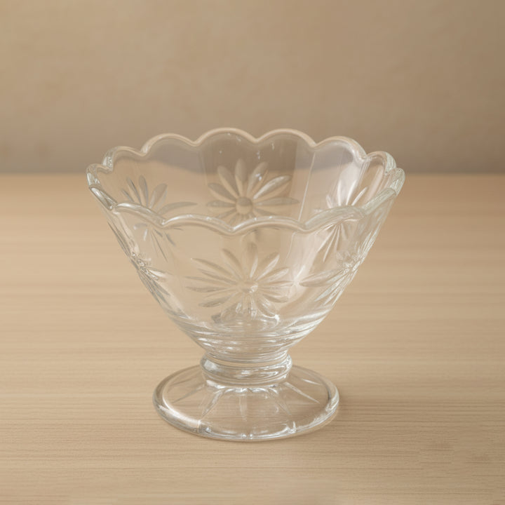VG173 Glass Ice Cream Cup Set – 6-Piece – Elegant Clear Floral Design